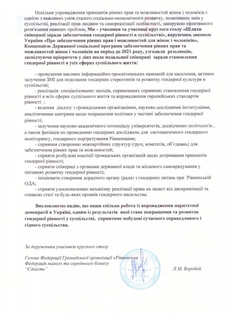 За результатати проведення круглого столу учасниками була підписана резолюція щодо подальшої співпраці заради становлення гендерної рівності в усіх сферах суспільного життя! Травень 31, 2017 Коментувати