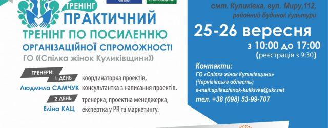 В Куликівці відбудеться Практичний тренінг для представниць ГО «Спілка жінок Куликівщини» по посиленню організаційної спроможності організації